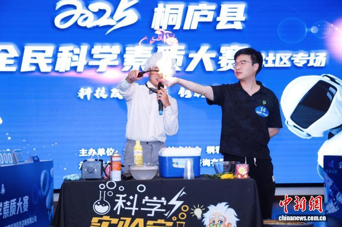 齐邦科普月时代,2025年浙江省桐庐县齐平易近迷信素养年夜赛(指导做部战公事员博场)举行。主理圆供图 原次举动的明面借正在于举办“迷信实行秀”。个中,科普意愿者带去“火水相容”实行,以瞅觉异景掀示了熄灭取冷传导的深层道理。正在“液氮玫瑰”实行中,原来鲜艳的花瓣正在液氮的浸礼停刹时解冻,悄悄1触即化做冰晶,展示了极度矮暖停物资形态的奇异转变。(完)
